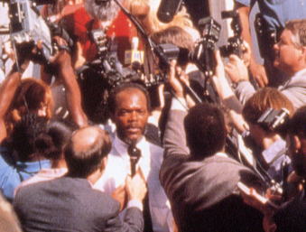 カールは報復を事前に友人の若い弁護士ジェイク・ブリガンズ(マシュー・マコノヒー)にほのめかし、その時は弁護してくれと言って、犯行に及ぶ。 ジェイクにも奥さんや子供がいる。 彼は自分の子供が強姦されたときの心境を考え、カールの報復を保安官に通報しなかった。 彼も自分の娘が強姦されたら、報復すると思っているのである。 しかし、この映画が「陪審員」などと違うのは、黒人が被害者の時は裁判が救わないという、現実的な事実が背景に存在することである。 自分の娘を強姦した犯人とはいえ、公衆の面前で、二人を射殺したのだから、たちまち逮捕拘留される。 犯人を弁護する立場にたつ人々を、KKKはさまざまな形で攻撃する。 黒人解放運動のほうでも、運動を専門にやっている組織がある。 裁判の過程を映画はみせるが、結論は無罪。 困難な主題を正面から扱って、しかも、人間的な解放へと結論づけるこの映画は、よく時代と格闘している。 犯人となった父親が黒人の肉体労働者でありながら、頭脳明晰な人間として描かれていたのは、映画の展開を考えれば当然とはいえ驚いた。 白人の黒人解放意識は、むしろこの事件によって試されており、黒人の解放は黒人によって担われると前提しているところが、長い差別解放運動の成果であろう。 子供が強姦され、復讐した父親が失業するという映画の状況を前提にすれば、無罪という判決は肯定できなくはない。 自ら売り込みに来た助手志望のエレン・ロアーク(サンドラ・ブロック)が、ジェイクを強力に手助けをして映画は進む。 この映画の主題とは直接関係ないが、無罪をかち取ってくれた弁護士ジェイクに、カールは一度もありがとうと言わなかった。 今後は再考の対象になる血縁による家族愛を巡っているとはいえ、この映画はアメリカの良心が作らせたことは間違いない。 1996年のアメリカ映画 | ||||||