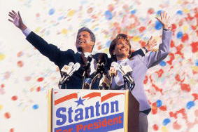 クリントンとヒラリーのコンビが、アーカンソーの州知事から大統領になるまでを、私生活から追った映画である。 スタントンが、大統領候補として指名権を獲得するまで、すでに彼は女癖が悪く、多くの女性とベットをともにしていた。 大統領に立候補すると、それらのスキャンダルを徹底してもみ消すリビー・ホールデン(キャッシー・ベイツ)が、掃除屋として登場する。 過酷な大統領戦キャラバンを戦い抜き、彼は大統領になるわけだが、 個人的なスキャンダルの暴露のしあい、と言った否定的な選挙戦を彼はとらない。 おそらくすべての大統領候補が何らかの暴露合戦をやっているだろうから、 80年代から続いてきたアメリカの産業構造の変化を、上手く読んでいたのがスタントン陣営である。 映画はスタントンの性格に焦点を合わせながら、そのあたりをきちんと捕らえていた。 1998年のアメリカ映画 | ||||||
