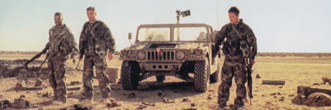 職業軍人であるゲイト(ジョージ・クルーニー)少佐は軽いノリで、砂漠にジープを走らせ、3人の仲間トロイ曹長(マーク・ウォールバーグ)、チーフ軍曹(アイス・キューブ)とコンラッド二等兵(スパイク・ジョーンズ)で、イラク陣地へと向かう。 イラク軍はクウェートから、金目のものを大量に盗んだが、それを地下の砦に隠していた。 軽いノリというか、粗い作りというか、大ざっぱというか、とにかく力まかせの映画だが、それがなかなか新鮮な出来である。 燃焼しきれなかった湾岸戦争のアメリカ陸軍兵士たちの戦争観が、鮮やかに描き出されている。 ベトナム戦争も戦うにつれ、ベトナム人は西洋人やアメリカ人と違うことが判ってきたように、アラブ人もまた別の人種である。 どこの砂漠で撮影したか判らないが、大量の物量を砂漠に持ち込み、大勢のエキストラを配置しての映画作りである。 インフィニティにはオープンカーがあるだのトヨタはどうしたのと、さかんに日本のブランドが出てきた。 1999年のアメリカ映画 | |||||||||