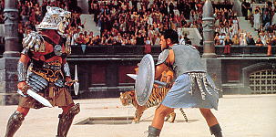 蛮族ゲルマンを征服し、ローマは世界の四分の一を支配下においた。 史実はゲルマンとは講和したが、映画では勝利することになった。 主人公になるマキシマスも、架空の人物である。 勝利した戦場で、司令官のマキシマス(ラッセル・クロウ)は、皇帝から次期皇帝に就任するよう依嘱を受ける。 おさまらないのは息子のコモドゥスである。 自分が皇帝になるものと決めている彼は、皇帝である父を殺してしまう。 そして、マキシマスの妻や子供を殺し、彼も殺したつもりだった。 コモドゥスは皇帝になる。 しかし、マキシマスは奴隷に売られながらも生きており、最後はコモドゥスに復讐するはなしである。 ちなみにグラディエーターとは、剣闘士という意味である。 父の前皇帝は偉大だったかもしれないが、息子のコモドゥスを愛さなかった。 この映画の主題は、愛されなかった子供の悲哀である。 それをローマ時代に見ようというのが、この映画の現代的な主張である。 この時代を、今日のような親子関係で考えることは間違いだろう。 結婚自体が愛情によるのではなく、家や支配のためだった。 だから、子供だって小さな時に人質にだされたり、政略結婚の駒にされた。 それでも子供たちは充分に成長し、各地で次の支配者になった。 彼等支配者にあっては、子供は乳母が育てるものだった。 だから、ここでは親に愛されない子供という、現代的な主題は成り立たないだろう。 映画の主な部分は、マキシマスが奴隷に売られてから、スペイン人のグラディエーターとして頭角をあらわし、コモドゥスへの復讐までを描く。 オスカーをとっただけあって、大規模なシーンがあり、お金のかかった大型映画になっている。 そして、物語のなかには現代への比喩がちりばめられており、それなりに良くできてはいる。 しかし、この映画には新たな主張がない。 まず前皇帝が廃止した人間の殺しあいゲームを、コモドゥスがグラディエーターを多用して、ローマ市民に提供するようになる。 コモドゥスの執政には、元老院にも反対者が多い。 前皇帝の遺志に反するコモドゥスの行動の必然性が説明されていない。 政治というのは、個人的な悪者と善人との戦いではない。 政治映画は、正しい信念と正しい信念の衝突がみせもので、それがアクション映画との違いである。 政治家は自分の信じる方針でやっている。 失政とは結果としてそれが、現状にあわなかったに過ぎない。 正義と正義のぶつかりあいだから、政治は恐ろしいのである。 信じる者同士のぶつかり合いといった側面が描かれず、この映画は単なる復讐劇に終わっている。 皇帝のまったく個人的な性格の問題というには、コモドゥスの行動の説得力がない。 マキシマスが復讐のために、グラディエーターをつとめ続け、無敵の戦いをする。 これもちょっとおかしい。 司令官として優秀な人間と、格闘技に優れた人間は必ずしも一致しない。 にもかかわらず、マキシマスは格闘にも無敵である。 このあたりに何の工夫もなく、ちょっと単純すぎる。 この映画でラッセル・クロウは主演男優賞を取るが、助演ながらコモドゥスをとつとめたホアキン・フェニックスのほうが、はるかに演技は上手かった。 彼は皇帝の孤独さを充分に体現していた。 情報はすべて皇帝のところに集まりながらも、皇帝には誰も本心をいわない。 疑心暗鬼のなかで、皇帝は確信を持った決断と、行動をしなければならない。 元老院こそ貴族が占めていたが、その貴族とて市民の意向を無視しては行動できなかった。 そして市民は、殺人ゲームが大好きだった。 そのあたりが、民主主義が衆愚の政治になりやすいといわれ、今日の政治になぞらえる。 しかし、ローマは長年にわたり維持されたのである。 特権的な地位だった皇帝でも、権力が大きければ大きいほど孤独であったろう。 当初、自信満々だったコモドゥスは、姉ルッシラ(コニー・ニールセン)の寝返りを知って落胆する。 姉の裏切りに逆上するのではなく、姉の愛情を失ったと感じるコモドゥス。 愛に飢えているこのあたりは、現代的な解釈であろう。 自信に満ちたコモドゥスから、狂気に走った最後へと、ホアキン・フェニックスはじつに細かく演技し分けていた。 屈折しているが元気のある前半は、ストレートに力強く行動し、後半は影のある表情に状況からのつよい圧力があることを表現していた。 役者の顔に大きな傷があれば、きわめて不利だろう。 三つ口の跡が残るホアキン・フェニックスだが、演技力があるせいでか大きな役を演じている。 そういった意味でも、アメリカの評価は公平な感じがする。 2000年アメリカ映画 |