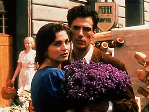 ピアノ弾きとして採用されたのは、アンドラーシュ(ステファノ・ディノニジ)だった。イロナはアンドラーシュに一目惚れし、ラズロからアンドラーシュに乗りかえようと、迷い始めていた。 ラズロは夫婦ではないので、イロナを縛ることはできない。 失恋と同時に、看板ウエイトレスを失うより、3人での生活を選んだ。 それから奇妙な三角関係が、ぎくしゃくしながらも平和裏に続いていく。 こうした三角関係が、現実にあったのか否かはわからない。 1930年代という時代を考えれば、こうした恋愛関係は無理だと思う。 おそらく現代的な考えだろう。 一夫一婦の結婚という制度が、崩れ始めた今では実にリアルな話である。 独占欲を飼い慣らし、1人を2人で支えあう。 しかも、1人を共有する2人は、親友でもある。 この映画では女性1人と男性2人だったが、反対のケースも充分に考えられる。 ただその場合には男性の体力がもつだろうか、ちょっと疑問である。 それが後に、物議をかもす名曲<暗い日曜日>だった。 哀愁をおび虚無的で、しかも愛情のこもったこの曲は、たちまち人々の心をとらえた。 時はナチスの台頭している時期、閉塞感から暗い空気が社会を覆いはじめた。 それを敏感に察知した多くの人たちが、<暗い日曜日>をききながら自殺していった。 ヨーロッパ各地でこの曲は流行したが、同時に自殺者の同伴曲ともなった。 わが国でも自殺者は、年間3万人くらいいるから、ヨーロッパ中で1ヶ月に数百人が自殺したとしても、驚く数字ではない。 ただ、多くの自殺者が、この曲を聴きながら死んだとなると、おだやかではない。 アンドラーシュは自分で作曲したこの曲が、時代を反映していることを思いながら、それが何であるか自分でも判らなかった。 時代は戦争へ、ナチスの侵略、占領と続く。 そんなとき、ハンスがナチの高級将校として、ブタペストへ赴任してくる。 最初のうち、ハンスはラズロの友人としてふるまい、ユダヤ人のラズロを庇護していた。 やがてイロナをめぐっての、ラズロへの嫉妬やアンドラーシュへのねたみが、心のなかで持ち上がってくる。 ハンスはすでに友情を裏切っていた。 自分になびかないイロナへの報復として、ラズロをアウシュビッツへ送る。 ハンスはラズロを救う代償として、イロナと肉体関係を求める。 仕方なしに応じたイロナだったが、約束は実行されなかった。 <暗い日曜日>というけだるく、哀切に満ちた音楽がなんども流れ、そのたびにこの映画の主題が観客に確認させられる。 最初のうちは、ラズロとイロナ、それにアンドラーシュの三角関係が主題かと思っていると、時間の進行とともに話は徐々にナチ批判になっていく。 物語の展開が実に上手い。 ゆったりした曲にのせて、物語もゆっくり進むが、決して退屈ではない。 男が男であり、女が女であった時代、男女ともに性的な魅力を存分に振りまいて、互いを魅了しあった。 かっちりとした服装の下には、互いの肉欲を隠し、上品そうな表の日常と官能にひたる裏の生活がある。 厳しく切ない三角関係に、各自は自分の心をなんとか、なだめながらしばしの幸福を味到する。 大人の関係を、少しの苦みとともに楽しんでいる。 ナチは大人の関係が、理解できないだけではなく、崩壊が間近に迫ってきた。 ハンスはドイツ敗戦を予測して、金品と引き替えに、ユダヤ人の命を救っている。 彼にはラズロへの友情よりも、戦後に役に立つユダヤ人の救済と、軍資金をためることが大切だった。 しかし、充分にナチス批判にもなっている。 むしろ大上段に構えた批判より、こうした人間味を加えたさりげない批判が、ずっしりと響いてもくる。 ハンスの秘書が、<ハイル・ヒトラー>と言うシーンが3度ある。 その響きが3度とも違って、ナチ批判の屈折した心理が伝わってくる。 ナチス批判でありながら、この映画はユダヤ人の味方でもない。 お金に執着し、命乞いするユダヤ人たち、ユダヤ人とて普通の人間である。 アウシュビッツに送られるラズロを、ハンスが探しに行く。 2人は目が合う。 ラズロは助けに来てくれたと思うが、別人の名前が呼ばれ、ラズロは貨車へと積み込まれていく。 短いカットでラズロの顔がアップになる。 無言の表情には、万感の思いが表れている。 <暗い日曜日>が名曲であることは間違いないが、映画の画面もまたこの曲にふさわしい。 こっくりとした深みのあるコダック特有の色調が、なめるようにピアノを映すとき、けだるさとともに哀愁が伝わってくる。 ピアノの弦をたたく駒が、1つまた1つと動くさまは、曲想の訴えと映画の訴えが見事に重なって見える。 レストランのしつらえもいい。 磨き込まれた古い床と、落ち着いた照明、厚手のしっかりしたテーブルクロス、サービスされる鮮やかな食事。 そして、肩の力の抜けたサービス。 よくわかった客たち。 至福の演出である。 小さなレストランでありながら、美味いものにこだわりながら、しっか