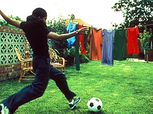 本人はサッカーがしたくてたまらないのに、サッカー禁止令さえでるしまつ。 性別や役割に従った生き方を強制するインド人社会で、何とか自己の欲求を通そうとする少女の自立を描いた映画である。 女性が男性同様にピッチを走り回る。 我が国では女性のサッカーはあまり見られないが、今や先進国の女性たちは、男性と同様にサッカーに興じている。 とりわけアメリカではプロ・リーグが存在し、有名選手は大層なお金を稼いでいる。 インド本国では、女性がサッカーには興じないだろうが、この映画の舞台はイギリスである。 ジェスはイギリスのインド人社会の因習に絡められながらも、先進国の女性として自立意識をもっている。 だから、彼女は男性に混じってサッカーに熱を上げる。 ジェスは、同じようにサッカー大好き少女のジュールズ(キーラ・ナイトレイ)に誘われて、地元の女子サッカー・チームに加わる。 もちろん、両親に隠れての参加であるが、ジュールズとのコンビで大活躍。 しかし、それが両親にばれて、家庭騒動になる。 決勝戦の日が姉の結婚式と重なって、出場が危ぶまれたり、また、ジュールズが思いを寄せていたコーチを、ジェスが奪ってしまったり、と話題は豊富である。 台詞が棒読みで、演技に学芸会的なところもあるが、話の展開には好感をもつ。 この映画の主題は、インド人女性がサッカーをするだが、女性サッカーという主題を支える論理が、重要なテーマになっている。 それはイギリス社会での、インド文化の認知の方法である。 イギリスでパキスタン人が差別されていることは周知だが、インド人も差別されている。 ジェスの父親は、アジアではクリケットの有力な選手だったが、イギリスでは、どこのチームも相手にしてくれなかった。 だから彼はクリケットを断念し、2度とボールを握らないと誓ったという。 インド対イギリスの歴史的な背景を描きながら、イギリス人であるジュールズの母親には、インド人は目上の人間を敬うので素晴らしい、とインド文化を賛美させる。 そのうえ、インドの結婚式とサッカーの試合をダブらせ、サッカー文化とインドの文化は横並びであり、どちらも同じように人間の文化なのだ、と主張する。 つまり、ジェスのサッカー熱をささえるうえで、文化の平等性という論理が展開される。 しかし、女性がサッカーをすることは、先進国の文化優位性の上に成りたっており、すでに文化の平等性を否定していることに気づいていない。 ハングリー精神が夢を実現する物語。 女性が男性の独壇場であるサッカーにあこがれ、冒頭のニュースのように男性選手を蹴散らす。 インドの少女が、自分の夢を満たすというのであれば、話は単純で理解しやすかった。 途上国の人間が、個人として先進国に殴り込みをかけるのだから、我々途上国の人間は、判官贔屓の痛快な出来事として見ることができる。 しかし、インド文化とイギリス文化が対等だと虚言を呈したことで、話の前提が崩れてしまった。 文化を並列させた所に、この映画の無理がある。 イギリス人であるジュールズが、インド文化に憧れてイギリス社会との軋轢と戦ったというのなら、インド文化とイギリス文化はイギリス人にとって対等だといえる。 しかし、インド人女性がサッカーにのめりこむ前提自体が、すでにイギリス優位の上に成立している。 しかも、試合に勝ったジェスは、アメリカへとサッカー留学に出発する。 ここではまったく先進国アメリカが、無前提に賛美されており、文化の平等性など微塵もない。 文化平等の欺瞞性が、無意識のうちに露呈している。 インド文化とイギリス文化はけっして平等ではない。 インド人がイギリスに流入することはあっても、その反対はない。 日本人がヨーロッパのサッカーに行っても、世界中から相撲の力士が来るわけではない。 文化には強弱がある。 弱い文化に属する人間が、強い文化の世界に憧れるのであって、けっして逆はない。 ジェスが憧れたのは、イギリス文化としてのサッカーであった。 サッカーに打ち込むことは個人技であり、結果として、役割に生きるインド文化からの脱出だった。 役割に生きる途上国では、女性は大人しくして、男性に仕えるために結婚するものだと考えられている。 女性がサッカー選手になるなどもってのほかだし、だいたい女性が自立することすら歓迎されない。 それは男性も同様で、個人的な願望でだけ自分の人生を決めることはない。 性別や長男か否かといった理由で、社会や家族が決めた役割に従って、男性も家族のために生きる。 家族が生産組織である以上、家族を無視しては生きていけない。 それが前近代であり農耕社会である。 個人願望と家族役割のあいだでの桎梏は、近代化途上でのおきまりの悩みである。日本近代文学の最大のテーマだった。ジェスの父親は、自分はクリケットを断念したが、ジェスの人生はジェスのものだ、と言って娘のサッカーを