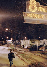 恋人と別れたラビットは、仕方なしに母親の住むトレーラーハウスに居候する。 離婚した母親は働いてない。 彼女は、若い男性とのセックスにひかれ、母親であるよりも、女性としての欲求に生きている。 しかも、グレッグとのセックスを、あけすけに息子に喋る。 子供を横並びに見る視線は、自立した女性の典型例だろう。 歳の離れた妹が同居するが、家賃の未払いによって、トレーラーハウスには立ち退き命令がくる。 ピップホップは戦う俳句である。 ただ無闇に言葉を連ねるのではない。 きちんとした約束事の上に、即興的に言葉を並べ、独特のリズムでたたきつける。 俳句や短歌などと同様に、生活からにじみ出る情感を歌うもので、詩やリズムが多くの人に受け入れられて、スタンダードとして定着していく。 ラビットは作詞家であると同時に、作曲家でもある。 映画自体はやや展開がのろく、けっして1級ということはできないが、映画の状況設定やもちろんエミネムのラップには共感する。 黒人居住区には、ヒップホップ・クラブ「シェルター」があった。 毎週末に、各自の歌詞をラップし、最高のラッパーを競うラップ・バトルが開催されている。 ここのDJであるフューチャー(メキー・ファイファー)は、ラビットの才能を高く買っている。 何とかしてラビットをステージに立たせたい。 しかし、彼は神経が細く、ステージでは声が出せなかった。 新しく恋人になったアレックス(ブリタニー・マーフィ)が、他の男性とセックスをしているのを目撃し、かっとなって相手の男性に暴行を働く。 しかし、男性とその仲間に復讐されてしまう。 身も心もボロボロになった彼は、やっと吹っ切れてラップ・バトルへ参加する。 白人でありながら黒人の音楽であるヒップホップをやるには、たくさんの差別があったはずである。 黒人からすれば、なぜ自分たちの音楽を奪うのかと、反発を感じるのは当然だろう。 しかし、個人にとって、好きになったものは結果である。 ピップホップが本人の嗜好に適合しただけであり、黒人音楽だから好きになったのではない。 それでも黒人は許せないだろうが…。 映画の中で、ラビットに向かって、何度もエルヴィスというヤジが飛ぶ。 エルヴィスも黒人テイストを、自分の音楽に取り込んで大成した歌手である。 差別にあいながらも、有り余る才能は、如何ともしようがない。 黒人たちも彼の音楽を認める。 事実、彼の音楽はきわめて今日的であり、台詞といいリズムといい、とても衝撃力がある。 踊るような躍動感といい、破壊しかねないような強い言葉が、つぎつぎと繰りだされてくる。 初期のマドンナがそうだったように、新たな音楽の登場は、今あるものに反抗する形で登場するから、必ず挑戦的な姿である。 エミネムの音楽も例外ではない。 同時代を生きる若者たちの不満や悩みを、拡大して出来上がった権威にたたきつける。 エミネムの音楽を聴いた後では、他の音楽は気の抜けたビールのように感じる。 マドンナが一時もっていたような、挑戦的なパワーがある。 マドンナは女性たちの台頭に支えられ、女性たちを力づけたとすれば、エミネムは何を背景にしているのだろうか。 ちょっと気になるのは、ピップホップが女性やゲイに対して否定的な点である。 この映画の中では、女性やゲイがラッパーに攻撃されると、エミネムは女性やゲイの味方になって、ラップで反撃していた。 しかし、あれは監督の演出であり、多くのヒップホッパーたちに共通する感覚ではない。 アメリカの黒人社会は、白人社会に比べると、はるかにマッチョで指向で、しかも女性差別が強い。 黒人男性は黒人女性を妊娠させると、さっさと逃亡してしまう。 その結果、黒人女性がシングルマザーになるケースが多い。 黒人たちの置かれている状況を考えれば、肉体が優位する男性支配であっても不思議ではない。 しかし、マッチョな黒人たちに支持されるのがピップホップだろうか。 この映画でも、ラップの聴衆の多くは、男性だった。 最近では女性サーファーも登場し、女性は男性を待つだけではなくなった。 今でこそヒップホップは黒人男性が主流だが、やがて女性ラッパーも男性と互角になるのだろうか。 しかし、サーフィンは白人文化として生まれており、裕福さが支えだったので、別の考えが必要かも知れない。 フェミニズムは裕福な社会になって、市民権を獲得できたのである。 だから、フェミニズムの担い手が、白人であるのは当然であった。 黒人たちの経済状態が貧しいとすれば、黒人たちは男尊女卑であるのは、仕方ないかも知れない。 そう考えると、ヒップホップの台頭は、黒人たちの男尊女卑を表現しているようにも感じる。 白人であるエミネムは、黒人のヒップホップから男尊女卑的な色彩を、抜き取るのだろうか。 それとも、エミネムも男尊女卑的なセンスを拡張していくのだろうか。 黒人ラッパーがメジャーになれずに、白人である