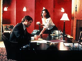 タイプ打ちと電話番に、彼女は賢明に励む。 仕事でしくじるたびに、彼女は不安になる。 そして、身体傷つけセットを使って、精神の安定を保っていた。 それがあるとき、エドワードの知るところとなる。 彼も自分の欲望が変形しており、人間関係では悩んでいた。 そのためか、エドワードは彼女の資質を嫌悪することなく、むしろそれを刺激する。 なんとそれは、彼女のお尻をたたくことだった。 お尻をたたかれたリーは性的に感じてしまい、やがてそれが彼への愛情に変わっていく。 すると、今までの自傷癖とも決別できるようになった。 2人の間には、不思議な関係が持続されるようになる。 インテリ弁護士が精神的に悩み、単調な仕事の秘書も精神的に悩んでいた。 精神が時代の鍵になりつつある現状に、この映画は非常識的な迫り方をしている。 尋常ではない迫り方に、現代的な問題意識が強く感じられる。 マニアの世界はそれで良い。 この映画にせよ本サイトにせよ、今まで特殊だと言われる精神が、通常の世界とも通底し始めている、と考える。 それがマニアとは違った見方である。 精神は各人各様で、それこそ幾通りもある。 しかし、だからといって他人と折り合いを、付けなくても良いというわけではない。 この映画の主張は、特異な精神的嗜好をもっていても、通常に認められるべきだという。 自傷癖を直せとは言わない。 むしろ、サディスティックな快楽を肯定する。 多くの精神療法が平均人とか、普通人を想定し、逸脱から復帰させようとするのに対して、この映画は逸脱自体を肯定し、逸脱を楽しもうとする。 フロイトなどの近代的発想から完全に離れて、変幻きわまりない人間の人間たる所以を肯定している。 近代工業社会の理念とは、工場で生産される物のように、標準的な均一の規格物が良しとされた。 人間も同様であり、あるべき標準が想定されているから、標準になるように教育された。 その典型が学校である。 同じカリキュラムで、同じ時間に全員が同じ方向を向いて、教室に座っている。 画一化に耐えられない人間は、欠陥品として排除された。 しかし、情報社会化する今、規格型の教育は有効性を失った。 と同時に、精神的な逸脱も問責されることなく、そのまま許容され始めた。 しかし、「ゴースト ワールド」や「ウエルカム ドールハウス」などの主人公が、不美人であるのを見ても判るように、女性に稼ぎがあり精神が問題の時代になると、美醜はあまり問題にならなくなる。 この映画でも主人公は決して美人ではないが、趣味を同じくするエドワードは彼女を心から愛している。 そして、軽く虐めながら、互いに欲情する。 屈折した性的快楽の肯定が実に潔い。 幼なじみのピーター(ジェレミー・デイヴィス)が求婚してくれるが、サディスティックな趣味を共有できなので、彼女はどうしてものれない。 自虐的な女性を描く映画が、サンダンスで評判になる。 アメリカの女性たちは、屈折した精神=男性から虐められることをも、相対化できる地平に至ったのだろうか。 この映画の主張は、男女が対等に愛し合うといった次元を突き抜けている。 我が国のフェミニズムの資質では、この映画を認めることはできないだろう。 いや理解すらできないに違いない。 しかし、個人主義が徹底するとは、当人たちが許容すれば、いかなる関係も認めることになる。 個人主義的発想は、社会的な視点を欠落させやすいので、必ずしも全面的には賛成できないが、精神的な世界を問題にする限り、肯定せざるを得ない。 この映画が描くのは、すでに芸術や哲学の世界である。 だから、我が国のフェミニズムが理解できないのは当然かも知れない。 一種ヨーロッパのデカダン的な雰囲気があり、アメリカの精神が成熟しつつあるのがよく分かる。 ヨーロッパとの違いは、それを貴族的な世界に閉じこめておおかず、大衆的な次元へと解放していることである。 イギリスの議員が、しばしば性的スキャンダルをおこすが、あれと同様な趣味がスキャンダルとはならない社会を、アメリカは作り始めている。 最後にリーは、専業主婦へと納まるのが気になった。 しかし、隠れてするから楽しいのではなく、自分の身体が要求する快楽そのものを肯定する。 そんな自虐的な世界を、この映画は楽しく描いている。 映画を見ている最中から、谷崎的世界を思い出していた。 谷崎の描く世界は、個人に耽溺するがゆえに世界性がある。 近代は一過的なものだが、人間は普遍的なのである。 時代認識の目に、星を一つ献上する。 2001年アメリカ映画 |