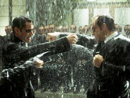 人類が住む地下だろうか、最後の砦ザイオンに、機械の群れが殺到する。 圧倒的な破壊力を相手に、人間たちは手も足も出ない。 手先である機械の群れを相手にしては、埒が明かないと考えたネオ(キアヌ・リーヴス)は、トリニティ(キャリー=アン・モス)と2人で本拠地マシン・シティへと向かう。 最後にネオは、機械のエージェントであるスミス(ヒューゴ・ウィーヴング)との対決に臨む。 彼が敗れて力つきて絶えようとすると、正義が敗れたことにより、正義の裏返しであるスミスも崩壊していく。 それにより、人類が救われるという結末である。 正義と悪は盾の両面であり、悪なくして正義がないという、日本人には馴染みにくい発想である。 徹底した二項対立的思考で、西洋人の発想だと感嘆しきりである。 しかし、地球を救うために、宇宙の果てまで行く話は、まるで宇宙戦艦大和である。 しかも、地球防衛軍は壊滅状態になり、自分の命を捧げることによって、やっと人類を救うというのは、何と陳腐な展開であろうか。 第1作で見せた複雑で深い洞察は、まったく影を潜めてしまった。 劇画的な画面の巧妙さには感嘆するが、それも大友克洋を連想させ、独創性が薄いと感じる。 当初、西洋人たちを相手に映画を作ったのだろう。 そのため、聖書やユダヤ教など、西洋人には馴染みのエピソードが、たくさん散りばめられていた。 それを読み解くのは、外国人である我々にも楽しい作業だったし、それが謎解きにもつながって物語に深みを与えていた。 しかし、あまりにもヒットしてしまったので、対象を世界を相手に変えたのだろう。 それとも、発想の泉が枯渇したのか。 主人公のネオとトリニティこそ白人のままだが、前作と異なりオラクルは黒人になり、希望の子供はインド人である。 当初の難しい話が、まったく影を潜めるのは、営業政策的には順当だと思う。 しかし、ヒットした第1作は、難しい設定だったことを、思い出して欲しい。 観客は決して単純な話だけを求めているのではない。 この映画に限らず、最近の映画作りは、実に複雑になっている。 部分部分を凝りに凝って作るから、密度がきわめて上がっている。 必然的に大人数が必要となる。 この映画でも、膨大な人間が制作に参加しており、日本人らしき名前も何人か見えたほどである。 おそらく各セクションごとの分業だろうし、分業を担当する人間間には、完成作の全体像は知らされていないだろう。 それにもかかわらずと言うか、だからというべきか、総合された映画はきわめて大規模になる。 もちろん部分の力があって、全体の力も向上するのだが、このくらい大きな作品になると、全体の統制が大変だろうと、いらぬ心配をしてしまう。 おそらく部分と全体と言った役割分担は、アメリカが今一番優れている。 これはコンピュータのプログラミングと同じ発想であり、インドなどは部分に関して強くても、全体的な構想力はいまだ及ばない。 期待した映画が、期待外れになることは良くある。 しかし、「バウンド」からの流れを見ていると、この若い監督には才能を感じていたので、とても残念である。 時代を切り開くために、現代アメリカ映画は、難しい主題を扱わざるを得なくなっているはずである。 娯楽映画を決して否定するわけではないが、先鋭的な主題を持った監督は、時代を突き進んで欲しい。 2003年アメリカ映画 |