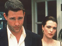 この手の映画の常套手段だが、まず小さな事件を作ってみせる。 この小さな事件に、最後まで引きずるトリックが、伏線としてたくさん張られている。 それらの伏線が、終盤になるに従って、次々に効き目をあらわしてくる。 実に上手い展開である。 B級映画でも、秀作はやはり一流品という証明である。 ロス・アンジェルスでの話、詐欺師のジェイク(エドワード・バーンズ)は、仲間と一緒になって、大きな詐欺をやってのけた。 しかし、奪った金は、ギャングの親分キング(ダスティン・ホフマン)の懐に入るべきものだった。 キングは怒り心頭に発し、直ちに報復に出る。 まず仲間のアルが殺される。 事態を見抜いたジェイクは、一人でキングの所へと乗りこむ。 一山当てるので、それを山分けすることで、許して欲しいと言う。 見張り役にルーパス(フランキー・G)をつけられたが、ジェイクは仲間たちと犯罪を実行に移す。 仲間はゴードー(ポール・ジアマッティ)とマイルズ(ブライアン・ヴァン・ホルト)、それに女スリのリリー(レイチェル・ワイズ)が新入りとして加わる。 銀行の法人融資の担当者を、一時的な融資だと騙して、リリーの色仕掛けで抱き込んでいく。 銀行員に海外の銀行へ送金させ、それを換金してアメリカへ持ち込む、という簡単な手口だった。 しかし、彼らが計画を実行に移した時、ジェイクを追ってFBI捜査官ビュターン(アンディ・ガルシア)が、ロス・アンジェルスに現れた。 ここで計画は中止かと思われたが、それでは映画は終わってしまう。 ジェイクが買収しているロス・アンジェルス警察の警官ウィットワース(ドナル・ローグ)とマンザーノ(ルイス・ガスマン)やFBIも絡んで、話は緻密に展開する。 それがスタイリッシュな画面の切り替えで、時間を前後させながら小気味よく進んでいく。 新人のリリーや見張り役のルーパスを信じて良いのか、それとも刑事たちが正しいのか、一体誰を信じればいいのか。 最後まで話の行方は判らない。 当然に色恋沙汰がからむ。 一夜を共にしたので、2人の間には信頼関係が生まれたかと思いきや、それも怪しくなってくる。 肉体的な快楽は、虚偽ではないだろうから、快楽に陶酔する間は、虚偽の心境が維持できるか。 詐欺師の恋とは、一体どんな心境で進むのか、それに興味が引かれた。 この手の娯楽映画は、2時間が楽しく過ごせれば、もう大拍手である。 入場料も充分に元がとれる。 すでに老人になったダスティン・ホフマンだが、軽い役とはいえ、演技自体を楽しんでいる様子が良く伝わってくる。 大作と言うほどのお金もかかっていないが、それでも脚本がしっかりしていると、充分に楽しめる好見本である。 ジェイクを演じたエドワード・バーンズも、「マクマレン兄弟」の監督とはうってかわって、すっかり役者に変身している。 ウィリアム・ボールドウィンのような不良2枚目を演じて、それなりに味を出していた。 正当派アメリカ人の容貌をもっているので、今後も主演作が多いと思うが、素材だけで生き残れるほどには、アメリカの映画界は甘くない。 演技もきっちりと押さえていく必要があるだろう。 コダックの発色が良い場面もあったが、ちょっと色調の統一が悪い部分もあったように感じた。 それにしても、この手の映画では、何でもありの展開だとはいえ、正義であるはずの人物が寝返るエンディングは、ちょっと安直な話である。 こうした筋書きが許されると、敵味方の区別が不明確になって、話自体が成り立たなく恐れがある。 2002年アメリカ映画 (2004.3.12) |