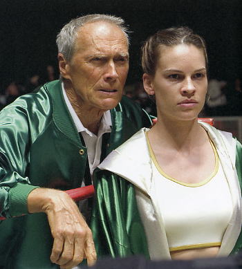 ボクシングのトレーナーであるフランキー(クリント・イーストウッド)は有能で、何人もの高名なボクサーを育てていた。 しかし、今では世をすねたように、場末のジムでひっそりと生きている。 ジムの手伝いをしているスクラップ(モーガン・フリーマン)の試合で、劣勢のスクラップにタオルを投げずに、彼の片目を失明させたことに自責の念をもっていた。 フランキーはストイックな男で、女性のボクサーを弟子にはとらなかった。 そこへ31歳のマギー(ヒラリー・スワンク)が入門して、彼の薫陶を受けたいという。 もちろん門前払いを続けるが、ある時ひょんなことから彼女のトレーナーを引き受ける。 それから1年半にわたる彼の指導によって、彼女の才能と努力を世界タイトルマッチの挑戦者へと導く。 本サイトも絶賛した「ガールファイト」など、女性がボクシングをやる映画は最近では多い。 しかし、この映画の主題は、女性ボクサーの出世物語ではない。 貧乏のどん底だったマギーは家族思いで、ファイトマネーをためて母親に家を買ってあげる。 母親は喜んでくれると思いきや、家などあると福祉がうち切られるので困ると言い放つ。 そして、ボクシングにうつつを抜かす娘を、母親は冷ややかに見やった。 スクラップは片目を失っているし、脳震盪や鼓膜を破る者などざらにいる。 それでもボクサーたちは、求道者のように練習に励む。 そして試合に臨む。 マギーもやっと世界タイトルの挑戦者になった。 汚い手を使うチャンピョンを相手に、どうやら勝てそうだと思った瞬間、ラウンド終了間際にパンチを食らって昏倒する。 悪いことに、倒れた場所には、休憩のための椅子が出されてあって、それに首をぶつけてしまう。 この映画の前半から中盤まで、フランキーとマギーの練習風景と連戦連勝の試合がつづく。 それをスクラップがたんたんと物語っていく。 物語の密度が高く、観客は充分にひきつけられて、画面に集中する。 どんな展開になるのか想像もつかない。 マギーを演じたヒラヒー・スワンクの引き締まった身体は、お腹の筋肉は6つのコブがでて、とんでもない訓練が行われたのだろうと思わせる。 縄跳びもシャープである。 優位に進めていた試合の絶頂から、マギーは首から下がまったく動かない寝たきり、しかも呼吸も自分ではできない人間になってしまう。 彼女は生きる気力を失うが、むしろ積極的に死のうとする。 彼女は充分に生きた人間として、何度も自殺しようと試みる。自己の尊厳を保ったまま、死を迎えたいのだ。 身体が動かないマギーは、フランキーに自殺の幇助を頼む。 彼は悩む。 いつも通っていた教会にも相談する。 神父はもちろん幇助には反対である。 この映画は、おそらくクリント・イーストウッドの集大成であろう。 共和党支持者だと思われる彼の心情は、草の根民主主義の権化であり、強烈な自己独立の精神だろう。 誰の手も借りることなく、自分1人で生き抜いていく。 彼は福祉などとは無縁の保守主義者だろう。 しかし、共感する者が登場したときには、心からの連帯を組む。 今まさにマギーがそうだった。 古風な彼には女性と共感できるとは思っていなかった。 だから一度は、マギーの申し出を断った。 フェミニズムなど都市部でだけ語られるに過ぎない。 多くのヤンキーたちは、今でも男尊女卑なのだ。 だからフランキーのマギー拒否はよく分かる。 しかし、肉体労働の支配する世界では、事実の提示の前には謙虚である。 職人たちは実力を認めるに、偏見を持たない。 女性であっても事実を示せば、心から共感し認める。 いままで共感できるほどの事実を示した女性がいなかっただけだ。 フランキーはマギーと本当に心が通い、互いに万全の信頼で結ばれる。 血を分けた家族は、信頼に値する者だろうが、今日では信頼は血縁ではなく、精神的なつながりが保証する。 この映画では、それが強烈に主張されている。 かつての彼なら、やはり血縁の家族を大切にしただろうが、時代は血縁から精神的なつながりへと動いている。 それを彼のような保守的な人間ですら、肯定してこの映画を撮っている。 そのうえ、宗教がまったく役に立たないことも自覚されている。 現在のアメリカ映画の主題は、純粋な愛情の賛歌と子供だとは、何度も言ってきた。 この映画は、現在のアメリカ映画の主題を、総集成してい見せている。 自立心の強い女性、そして女性であることに、何の価値も見いださない女性、たくましい自立心と尊前を求めた生き方。 それを年老いたフランキーが育てようとする。 マギーは貧しい中で、ウェイトレスをやってボクシングを続けた。 密度の濃い1年半だった。 たった1年半だったが、彼女は何も悔いるところはない。 死ぬとはよく生きることだ、人間の尊厳を尊ぶ彼女は、フランキーに身をもって教えていく。 教える者が教えられるのは、今のアメリカ映画の大きな主題である。 大してお金もかかっていな