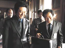 人物紹介をしながら、観客を物語に引き入れるは難しい。 だから、多くの映画は別の事件という形で、主人公の紹介をするが、この映画はいきなり事件にはいってく。 これは上手い導入である。 しかも、冒頭から警察とのカーチェイスで、犯人と思われる男チェ・チャンヒョク(パク・シニャン)が乗った車は、ガードレールを突き破って、崖から転落し炎上する。 スピーディな導入で、観客は知らずのうちに、映画に引き込まれていく。 パトカーに追われていれば、犯罪であろう。 事故現場から戻って、物語が始まり、話は刑事の取り調べと続く。 主任のチャ刑事(チョン・ホジン)が独特の性格設定で、コミカルな味を上手くだしている。 出獄してきたチェ・チャンヒョクは、投資詐欺師のキム先生(ペク・ユンシク)に、韓国銀行を騙す計画を持ちかける。 それに偽造の名人ガリソン(キム・サンホ)、女性相手の詐欺師ツバメ(パク・ウォンサン)とオルメ(イ・ムンシク)が加わって、計画は進行する。 そこへ、もう1人ソ・インギョン(ヨム・ジョンア)という女性が、訳ありで絡んでくる。 車が炎上したことによって、犯人の1人チェ・チャンヒョクは死んだと思わせるのだが、これでは観客は騙されない。 犯人の車は、パトカーに追われて、トンネルにはいる。 トンネルから出てくると崖から転落となるのだが、死体の確認がないところから、トンネルのなかで何か工作があった、と思わせてしまうのだ。 チャ刑事の前に、転落して死んだはずのチェ・チャンヒョクの兄、チェ・チヤンホが登場する。 彼は弟の保険金を受け取るのだが、その金を目当てにソ・インギョンがすり寄っていく。 物語もだいぶ進んでから、チェ・チャンヒョクと兄のチヤンホが1人2役で、同一人物だと知れるが、映画は時間を前後させて進んでいくので、物語の前後関係をつかむのがむずかしい。 しかも、チェ・チャンヒョクは整形手術を受けて顔を変えており、チェ・チャンヒョクとチヤンホの性格付けもまったく違う。 兄のチヤンホがキム先生の詐欺にあって、4年前に自殺していたと明かされるのは、ずっと後になってである。 チェ・チャンヒョクは最初から、キム先生に殺された兄の復讐を狙っていたとは、ちょっと想像するのが難しい。 復讐が最初からの計画であったら、ご都合主義の展開だが、映画を見ている最中は不自然さを感じさせない。 これは物語の構成よりも、若い監督ゆえの画面の迫力のせいだろうか。 5人の詐欺師たちの生態は、とてもスタイリッシュで、アメリカ映画をしのぐといっても言い。 キム先生を中心にした詐欺の場面とか、韓国銀行への侵入とか、上手い撮り方である。 しかも最後で、チャ刑事の部下であるパク刑事に、キム先生を殺させるのも上手い。 しかし、物語を支える部分は、ちょっと無理があった。 そうはいっても、娯楽映画としては充分に及第点である。 謎解き映画作りは難しい。 判りやすい展開にすれば、謎がバレてしまうし、難しくすると理解不可能になってしまう。 兄のチヤンホが有名な作家だとは紹介されても、キム先生に騙されて自殺した人物との関連性は、ぼんやりとしか描かれない。 ここをきっちりと描いたら、たちまちばれてしまって、謎解き映画にならない。 この程度がちょうど良いのかも知れない。 「オールド・ボーイ」をはじめ、脚本がよく練られているものが多く、画面に緊張感があり、俳優の演技も熱っこい。 肉食人種的なしつこさを画面から感じるのも、韓国映画のレベルがあがっている証拠だろう。 「ロック・ストック&トゥー・スモーキング・バレルズ」を思わせるB級映画で、星の対象になる種類の映画ではないが、充分に楽しめる作品である。 一度エンドタイトルが出てから、顔の整形を戻したチェ・チャンヒョクが、宝石店で詐欺を働き、宝石を手にでてくる。 すると、車の助手席には、ソ・インギョンが乗っている。 結局2人は、いい関係になったと思わせるのも、軽いのりでよかった。 この監督は33歳と若いので、今後が楽しみである。 2004年韓国映画 (2005.12.13) |