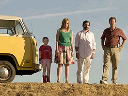 この映画は、小品である。 主な登場人物は6人だけ。 しかも、古いワーゲンのマイクロ・バスが、ほとんど舞台となっており、セットは最後のコンテスト・シーンだけだろう。 それでいながら、というよりむしろ反対に、小品であるがゆえに現代社会への批判ができている。 アリゾナに住むフーヴァー家の話。 夢やぶれた夫リチャード(グレッグ・キニア)と妻シェリル(トニ・コレット)の娘オリーヴ(アビゲイル・ブレスリン)が、ミス・リトル・サンシャインに出場することになる。 この家には、兄のドウェーン(ポール・ダノ)、お爺さん(アラン・アーキン)と兄のフランク(スティーヴ・カレル)が、一緒に住んでいる。 ドウェーンはニーチェに狂っており、無言の修行中。 お爺さんはヘロイン中毒で養老院を追い出された。 ゲイのフランクは恋人を失って、自殺をはかって退院したばかりである。 カルフォルニアで行われるミス・リトル・サンシャイン・コンテストに行くのだが、危なっかしくて誰もおいていくことはできない。 お金のない一家は、アリゾナからカルフォルニアまで、マイクロ・バスに乗って行くことにする。 映画は一種のロード・ムーヴィーである。 途中でお爺さんは、オーバードーズで死んでしまう。 道中で発生する事件を何とか解決しつつ、やっと会場にたどり着いてみれば、お爺さんに指導されたオリーヴは、ストリップ・ダンスをやってのけた。 ミス・リトル・サンシャイン・コンテストからは非難囂々だったが、彼女は踊り続けた。 ミス・リトル・サンシャイン・コンテストは俗物の極みで、オリーヴのダンスこそ体制批判だった、というのがオチだった。 上手い役者たちの演技で、それなりのテンポがあって、話はよく判る。 星を一つ付けようかも思ったが、イマイチ引きつけるものがない。 お爺さんの存在が大きく、老人でありながらヘロイン中毒という設定は良いが、どうも彼には行動がともなわない。 チョイ悪老人は、「スペース・カウボーイズ」「ウォルター少年と、夏の休日」などで描かれており、 もっとシャープな老人像が欲しいところである。 過激な老人とその影響を受けた子供の行動が、現代社会の批判となるという設定は、充分にあり得る話で、今日的で格好の主題だろう。 着眼は良いのだが、登場人物たちがエンディングまで落ち込むばかりで、最後にオリーブのダンスが批判になるのでは、ちょっとインパクトが弱い。 リチャードの出版計画は、破綻するのが見え見えである。 インパクトの弱さは、おそらく各エピソードの先が見えてしまうからだろう。 2006年アメリカ映画 (2006.12.27) |