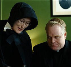 カソリックの神父は、女犯をのぞいて、一切の快楽が許されている。 この映画でも、主人公のフリン神父(フィリップ・シーモア・ホフマン)は、酒を飲むしタバコも吸うし、甘いものも嗜好品も贅沢な食事も、なんでも享受していた。 そのうえ、太った女性への蔑視的な発言もあった。 神父は独身でありさえすれば、享楽的な生活を送っても良いのだ。 セント・ニコラス・カトリック学校に、ドナルドが初めての黒人生徒として入学してきた。 彼は黒人であるがゆえ、何かにつけて虐められていた。 自由な時代を謳歌するフリン神父が、ドナルドをかばって力づけていた。 しかし、その親しさが廻りからは、少年愛=ホモではないかとの疑惑を招いた。 ドナルドの担任だったシスター・ジェイムズ(エイミー・アダムス)が、校長のシスター・アロイシス(メリル・ストリープ)に疑惑を伝えたので、話が大きくなった。 スキャンダルとばかりに、フリン神父の追い出しにかかる。 彼がドナルドとホモ関係を犯した証拠はない。 あるのは単なる疑惑である。 校長はフリン神父の前任校へ電話をして、事情を聞いたという嘘まで使って、徹底的に疑惑を追求する。 相手が虐めの対象だった黒人少年であるため、フリン神父の行動は弱者への庇護にも見えた。 しかし、まったく証拠はないにもかかわらず、疑惑だけでフリン神父は追いつめられていく。 ドナルドもドナルドの母親(ビオラ・デイビス)も、問題を大きくしたくない。 むしろフリン神父との関係を、続けても良いとさえ思っている。しかし、校長はホモを許さない。 ホモという少年への性的な嗜好は、性欲の問題ではなく、一種の病気である。 彼を放置すれば、必ず再犯すると確信する校長は、どんな手段を使ってもフリン神父の放校を謀る。 校長は抗争に勝って、フリン神父は転校することになる。 しかし、彼女はその後、彼が主任司祭へと出世したことを知る。 性愛を否定する宗教は、必ず逸脱者を生み出す。 カソリックはバチカンの廻りに私生児を生み出したし、日本の天台・真言といった密教は、門前に尼寺を誕生させた。 女犯が禁止されているにもかかわらず、宗教家たちは教義が守れない。 それでも宗教家は教壇から、信者たちに信仰を守れと教える。 聖書は同性愛は否定しているが、少年愛には言及していない。 そこで、女犯を禁止された司祭は、少年を寵愛し自らを慰めてきた。 前近代では、司祭の寵愛を得た少年は、カソリック教団での出世の道が開けたと喜んだであろう。 しかし、年齢秩序の崩壊した近代社会では、少年愛は絶対の悪なのだ。 それはカソリックの組織をも放置しなかった。 少年愛は犯罪である。 現世の規律の変更が、宗教界の規律を変えたのだ。 かつては未成年者との性愛は、対少女であれ対少年であれ、否定されていなかった。 前近代では生理・精通があれば、セックスをしても許された。 そうした背景があったから、教義上、女犯を禁止された神父は、少年を愛した。 前近代では、成人男性が少年を愛することは、プラトンの「饗宴」を持ち出すまでもなく、どこでも普通にあった。 我が国の男色が、少年愛だったことは周知であろう。 そして、陰間の得意客が、僧侶だったのは有名である。 高齢者のもつ知恵を、後世に伝えるためには、年齢秩序の尊重が不可欠だった。 少年愛は知の伝統を伝える行為として、前近代社会にきわめて適合的だった。 だから、少年愛は肯定された。 近代になると、知の伝達に年齢秩序は不要になった。 むしろ、高齢者のもつ旧来の価値観は、新しい時代の発展を阻害する。 そのため、成人男性が年少者を愛することが、許されなくなってきた。 例え女性に対してであっても、ロリコンは犯罪となったのである。 そこで少年愛も否定されるのは、当然の成り行きである。 近代社会での知の伝達は、肉体を通しておこなわれるのではない。 知の集積物である教科書が、後世への教育となった。 知が人間から離れて、知だけで自立したと言ってもいい。 老人の口から教えを聞かなくても、近代文明は発展する。 経験にしばられた老人の言葉は、むしろ進歩を阻害する。 高齢者が優れているという年齢秩序はあってはならない。 加齢という属性は、より優れた知性を保証しない。 むしろ、年少者たちの自発性や創造性を喚起すべき、と考え始めた。 だから高齢者は遠ざけられ、年少者への性愛は禁止され始めた。 カソリック教団も近代社会に生きる以上、近代の知の伝達方法から逃れることは出来ない。 当該の社会から逃れると、組織の後継者がいなくなってしまう。 組織の永続をねがえば、どんな組織も社会の規律を無視するわけにはいかない。 カソリックも女犯禁止にくわて、少年愛も禁止せざるを得なくなった。 古いカソリック教団は、女犯には厳しいが、いまでも少年愛には無自覚である。 だから、しばしば少年愛事件がおきる。 カソリックは少年愛に寛容だから、少年愛